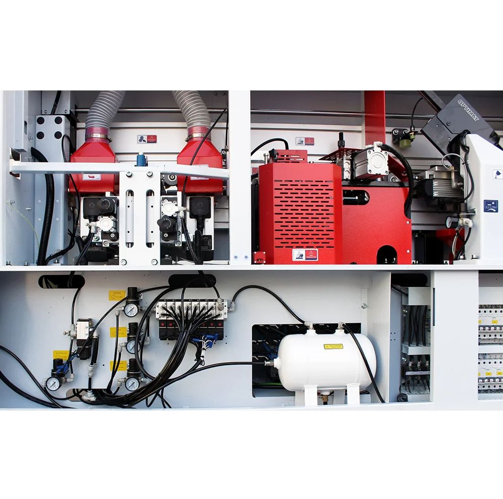 Maszyny polskiej marki OPTIMAT to synonim niezawodności, potwierdzonej przez wielu zadowolonych klientów. Model SCALAR z funkcją zarabiania naroży zapewnia najwyższą jakość wykończenia obrabianych elementów. Przeznaczony do oklein o grubości do 3 mm (zwoje) i 4 mm (paski). Wyposażony w zbiornik na klej o pojemności 1,2 kg, oferuje wstępne frezowanie, automatyczne klejenie, przycinanie krawędzi, frezowanie góra-dół, cyklinę promieniową oraz funkcję polerowania, co gwarantuje perfekcyjne efekty.